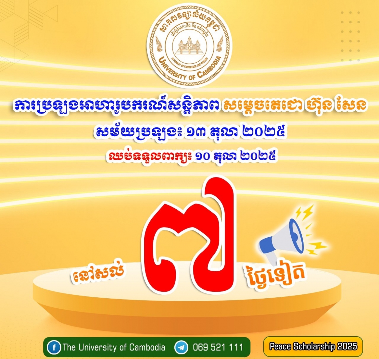 The Samdech Techo Hun Sen Scholarship Examination will be held on October 13, 2025, with the application deadline on October 10, 2025 — only 7 days left!
