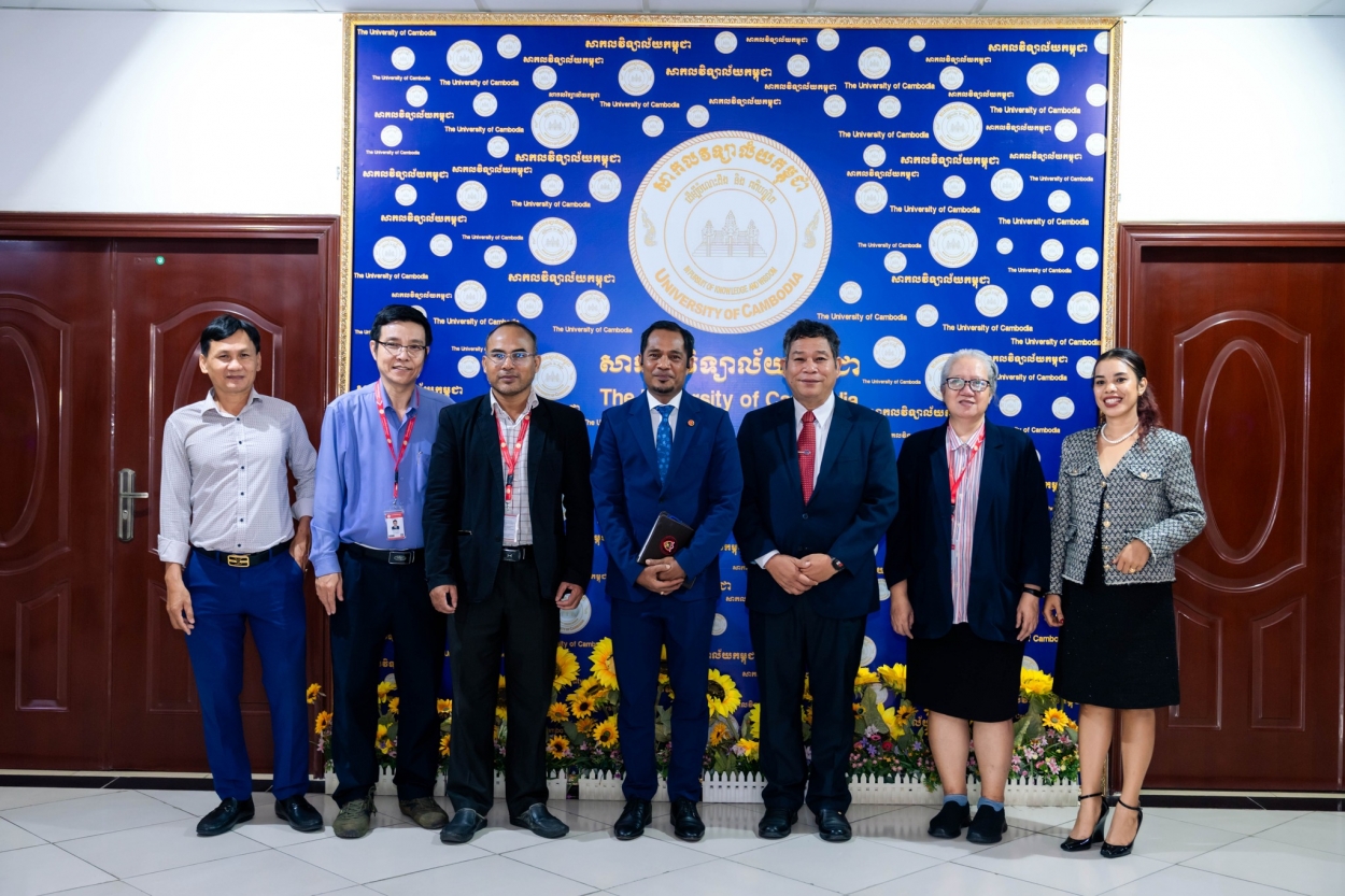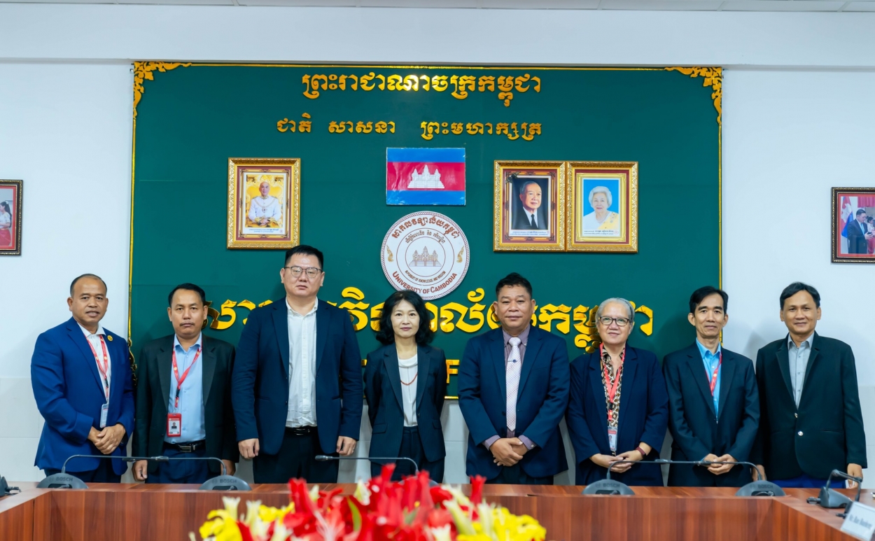 On 1st September 2025, Dr. Y Ratana, Vice President for Academic Affairs highly represent LCT KHEM Rany, President and Member of Board of Trustee of The University of Cambodia led management team members to welcome Professor Dr. Zoe Che Yi (Vice President of Sanya University, China) and Secretariate of ASEAN-China Association of Private Higher Education Institutions (ACAPEI) and Mr. Zhijun Huan (International Project Manager, Three TransX Campus Initiative) and discuss on the future cooperation